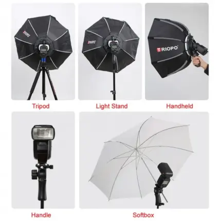 Triopo 90cm / 47″ Deep Octagon Umbrella Speedlite Softbox with Flash Bracket